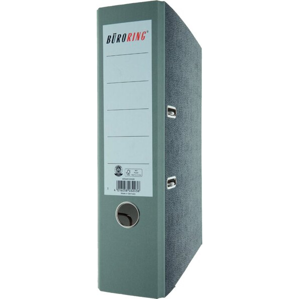 Büroring 201031GR Ordner • Format: A4 • Farbe: schwarz/grau schwarz marmoriert/grauer Rücken • Rückenbreite: 80mm breit für 600 Blatt • Material: Karton, Papier-kaschiert • Zertifikat: Blauer Engel • Ringmechanik: Hebelmechanik • mit Griffloch • mit Kantenschutz