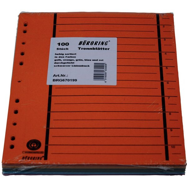 Q-connect Trennblätter KF00642 A4 farbig sortiert 230g | Wekre Trennblätter 9519908420 A4 farbig sortiert 230g | Büroring Trennblätter BRG670103 A4 blau 230g | Büroring Trennblätter BRG670102 A4 rot 230g | Büroring Trennblätter BRG670100 A4 grün 230g | Büroring Trennblätter BRG670101 A4 gelb 230g | Büroring Trennblätter BRG670105 A4 grau 230g | Büroring Trennblätter BRG670106 A4 chamois 230g | Büroring Trennblätter BRG670104 A4 orange 230g | Büroring Trennblätter BRG670112 A4 chamois/schwarz 230g |