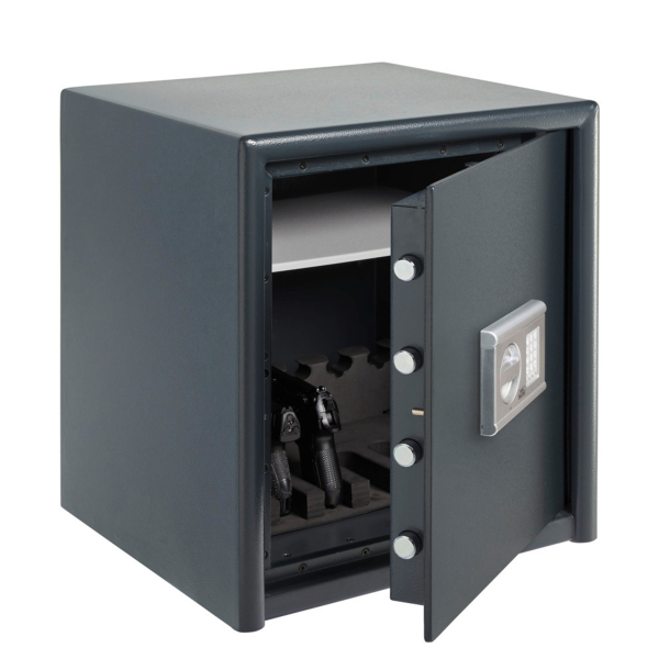 Der Tresor verfügt über ein elektronisches Schloss, das Ihnen den Zugriff zu Ihren Wertgegenständen ermöglicht. Dank der höhenverstellbaren Fachböden können Sie den Innenraum des Tresors flexibel gestalten und Ihre Wertgegenstände ordentlich und geordnet aufbewahren. Mit einem Gewicht von 80 kg ist der Tresor robust und stabil.