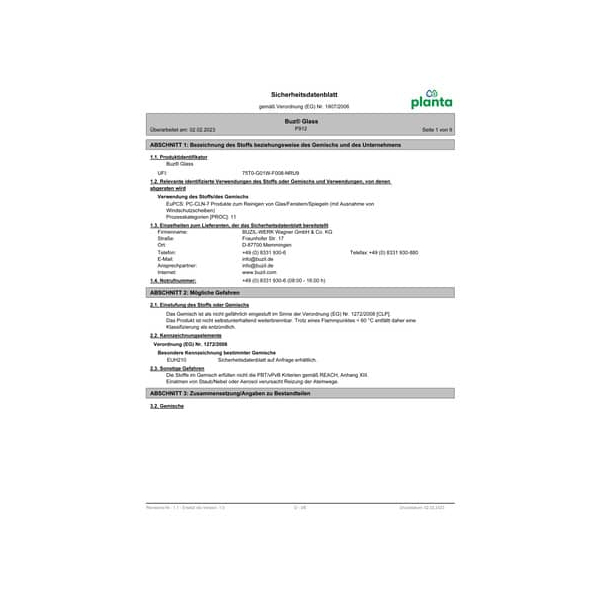 | BUZIL-WERK Wagner GmbH & Co. KG, Fraunhofer Str. 17, D-87700 Memmingen | Telefon: +49 (0) 8331 930-6 Telefax:+49 (0) 8331 930-880 | E-Mail: info@buzil.de | Ansprechpartner: info@buzil.de | Internet: www.buzil.com | |