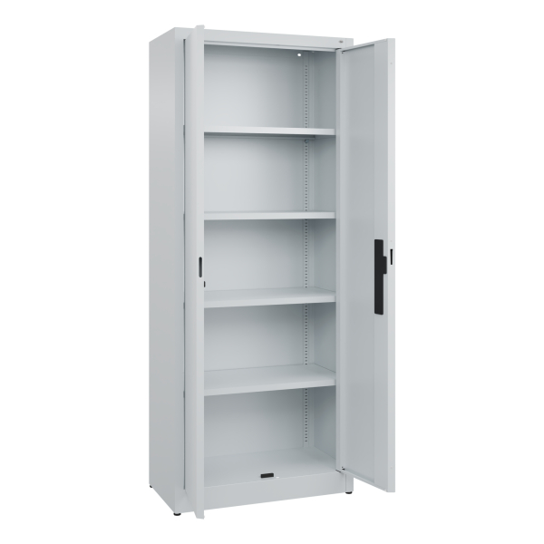 Die verstärkten Türen bieten hohe Stabilität, während die Türaufhängung oben und unten in Drehbolzen für einen sicheren und gemeinsamen Verschluss sorgt. Der ergonomische Muldengriff Ergo-Lock 4.0 garantiert eine einfache und sichere Handhabung. Mit einem 3-Riegel-Verschluss ausgestattet, ist dieser Schrank nicht nur praktisch, sondern auch sicher.