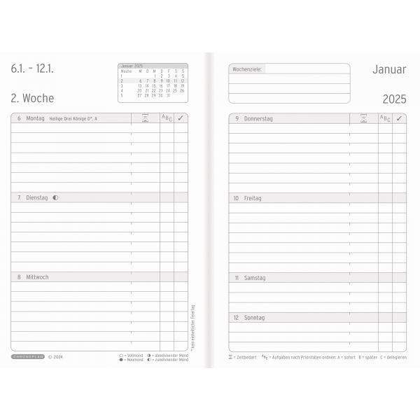 Chronoplan Buchkalender 50966, Black Edition, schwarz, 1 Woche / 2 Seiten, 9,5x14cm (Mini), 2026 | Chronoplan Buchkalender 50925, Chronobook, schwarz, 1 Woche / 2 Seiten, 13,5x21cm (A5), 2026 | Chronoplan Buchkalender 50926, Black Edition, schwarz, 1 Woche / 2 Seiten, 13,5x21cm (A5), 2026 | Chronoplan Buchkalender 50935, Chronobook, weiß, 1 Woche / 2 Seiten, 13,5x21cm (A5), 2026 | Chronoplan Buchkalender 50826, Business Edition, schwarz, 1 Woche / 2 Seiten, 9,5x14,5cm (Mini), 2026 | Chronoplan Buchkalender 50936, White Edition, weiß, 1 Woche / 2 Seiten, 13,5x21cm (A5), 2026 | Chronoplan Buchkalender 50825, Chronobook Business, schwarz, 1 Woche / 2 Seiten, 9,5x14,5cm (Mini), 2026 | Sigel Buchkalender SF556, sortiert, 1 Woche / 2 Seiten, 2026 | Rido / Ide Buchkalender 7024074905, Manager, schwarz, 1 Woche / 2 Seiten, 20,5x26cm, 2026 | Quo Vadis Buchkalender 024069Q, Prenote VZ Club, schwarz, 1 Woche / 2 Seiten, 21x29,7cm (A4), 2026 |