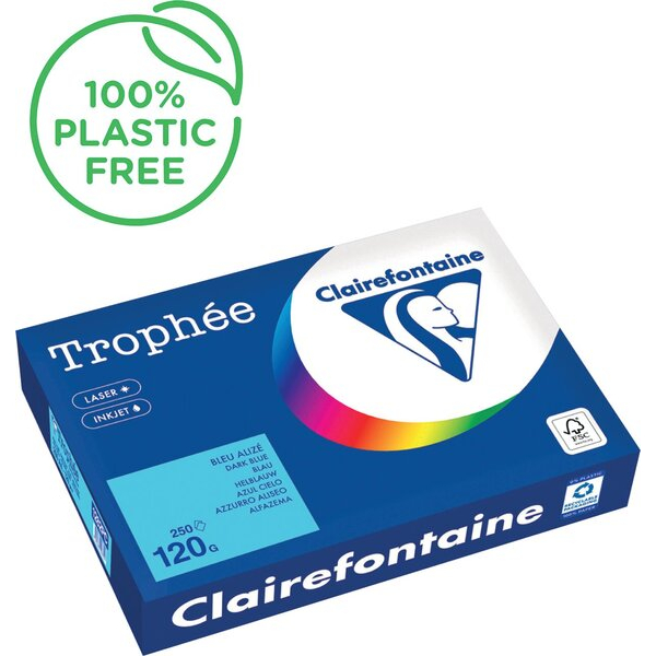 Entdecken Sie das hochwertige Kopierpapier Trophee 1282PC blau A4 120g von Clairefontaine, das nicht nur durch seine intensive blaue Farbe besticht, sondern auch umweltfreundlich ist. Dieses Farbiges Papier ist zu 100 % PE-frei und verfügt über eine Feuchtigkeitsbarriere, die eine einfache Entsorgung im normalen Abfall ermöglicht.