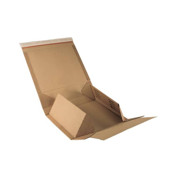 Dank des umlaufenden, doppelt gefalteten und geklebten Kanten- und Eckenschutzes ist die Buchverpackung besonders stabil und stapelfest. Ein zusätzliches Einsteckfach im Deckel bietet Platz für Dokumente, während die vorgefaltete Bauweise Platz spart. Der selbstklebende Verschluss sorgt für eine schnelle und einfache Handhabung, ohne dass zusätzliches Verschlussmittel benötigt wird.