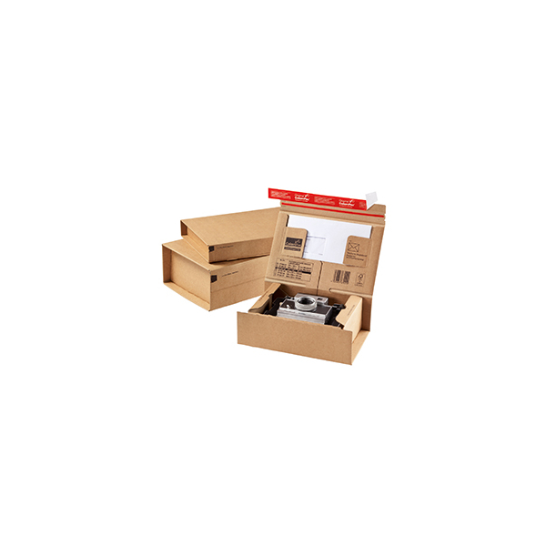 ColomPac POST-BOX XL/A3+ CP 067.07 Versandkarton in braun • z. B. geeignet für: A3+ • Material: Kraftliner Wellpappe • Innenmaß: 460x310x160mm • Außenmaß: 515x335x170mm • selbstklebend • mit Aufreißhilfe