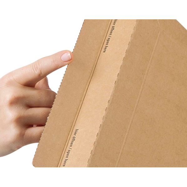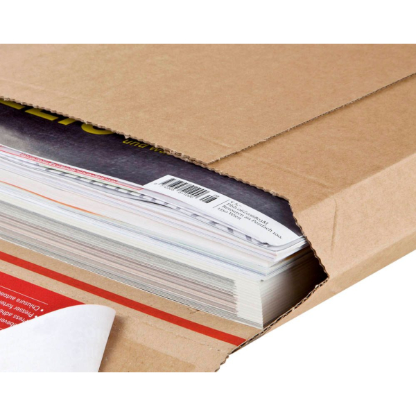 Variable Füllhöhe bis ca. 50 mm, extrem stabiler Knickschutz durch feste Wellpappe, umlaufender Kantenschutz, wiederverschließbar mit Verschlussclip