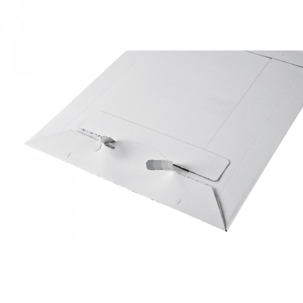 • Format: A5 • Maße: 170x245x-30mm (BxHxT) • Klebung: selbstklebend • Farbe: weiß • Material: Karton • kurze Seite offen • mit Aufreißhilfe