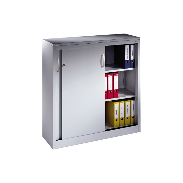 2 Fachböden höhenverstellbar, 70 kg Tragkraft/Fachboden, Schiebetüren abschließbar, Bügelgriff