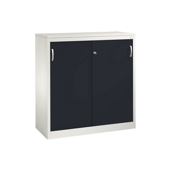 2 Fachböden höhenverstellbar, 70 kg Tragkraft/Fachboden, Schiebetüren abschließbar, Bügelgriff
