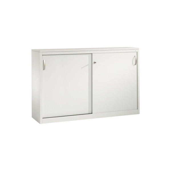 2x2 Fachböden höhenverstellbar, 70 kg Tragkraft/Fachboden, Schiebetüren abschließbar, Mitteltrennwand, Bügelgriff, Abdeckspanplatte, Sichtrückwand