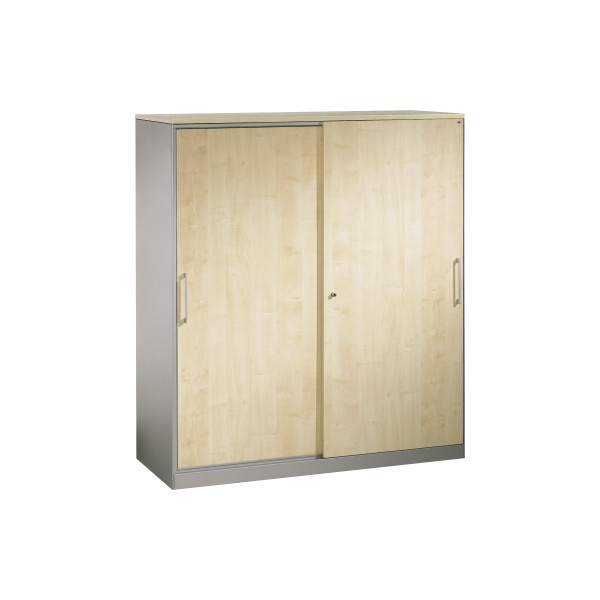 CP-Möbel Schiebetürenschrank Asisto 142011000S10011, abschließbar, 4 OH, weißaluminium/ahorn, 120x163,5x43,5cm (BxHxT)