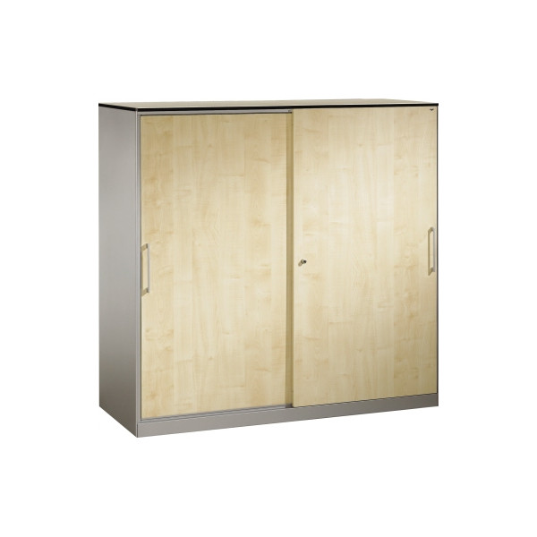 CP-Möbel Schiebetürenschrank Asisto 142011000S10011, abschließbar, 4 OH, weißaluminium/ahorn, 120x163,5x43,5cm (BxHxT)