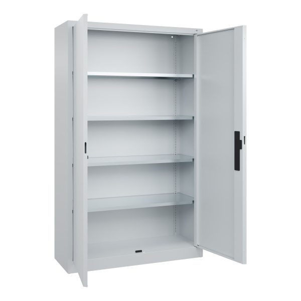 Der C+P Werkzeugschrank mit den kompakten Maßen 1200x1950x400mm (BxHxT) bietet vier großzügige Fachböden, die aus robustem, lackiertem Stahl gefertigt sind. Die Front in lichtgrau sorgt für eine ansprechende Optik und passt sich mühelos in verschiedene Umgebungen ein. Dank der Abschließvorrichtung in Form eines Zylinderschlosses ist Ihr Werkzeug sicher verstaut.