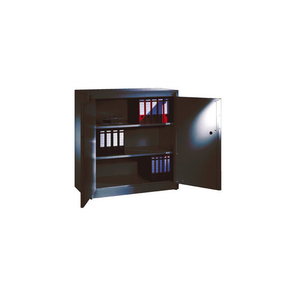 Mit gedämmten Wänden und 25 mm starken Spezial-Isolierplatten der Klasse A1 ist dieser Schrank optimal für Ihre sicherheitsrelevanten Unterlagen geeignet. Die Türaufhängung ist in stabilen Drehbolzen integriert, die einen großzügigen Öffnungswinkel ermöglichen. Der Schrank schließt sicher, da die Türen zueinander schlagen und für einen gemeinsamen Verschluss sorgen.