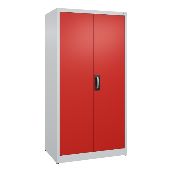 • Frontfarbe: verkehrtsrot • Korpusfarbe: lichtgrau • Material: Stahl • Flügeltüren • abschließbar (Zylinderschloss)