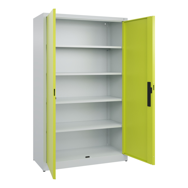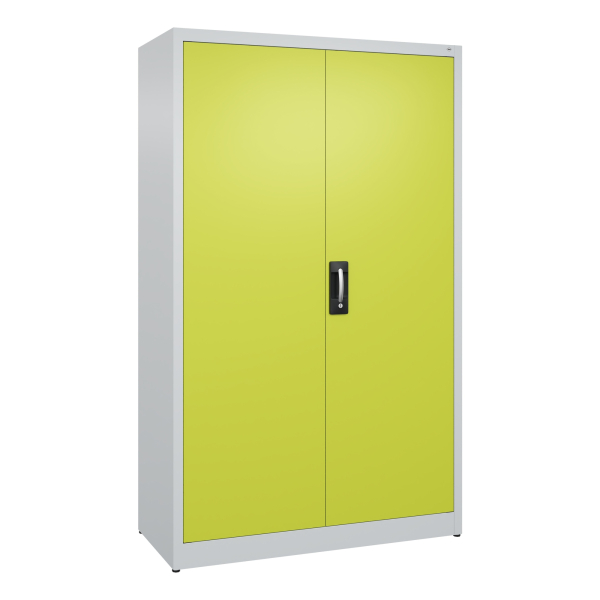 • Frontfarbe: grün • Korpusfarbe: lichtgrau • Material: Stahl • abschließbar (Zylinderschloss)