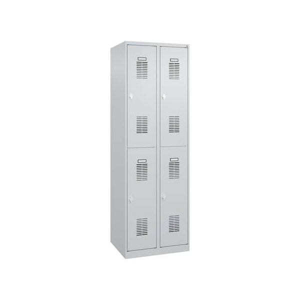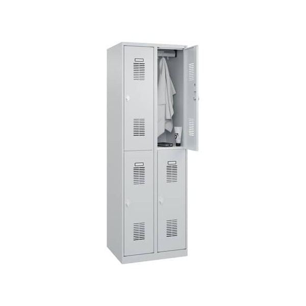Der CP Garderobenschrank bietet Ihnen mit 2 Abteilen und je 2 Fächern ausreichend Stauraum für Ihre Garderobe in stilvollem hellgrauem Design.