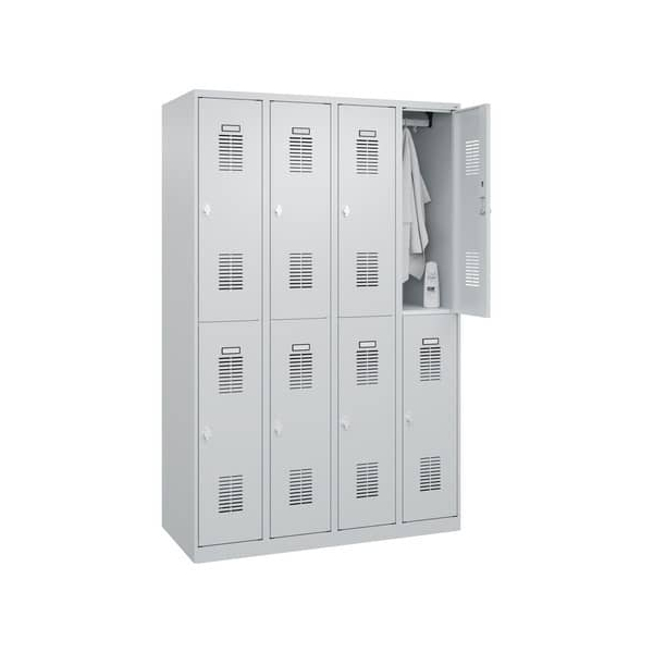Der Garderobenschrank 4Abteil je2Fäch h.grau ist eine praktische Lösung für Ihr Zuhause, Büro oder Geschäft. Durch die Aufteilung in vier Abteile behalten Sie den Überblick über Ihre Garderobe und können Ihre Kleidung bequem verstauen. Der Schrank ist stabil und langlebig, sodass Sie lange Freude daran haben werden.
