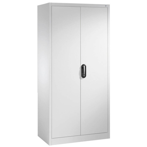 4 Fachböden höhenverstellbar, 70 kg Tragkraft/Fachboden, Flügeltüren abschließbar, Bügelgriff, Sichtrückwand