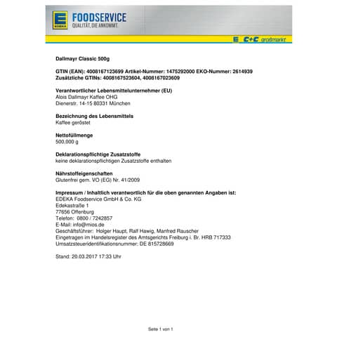 zum Datenblatt| Dallmayr Dallmayr in Kaffee anzeigen | |