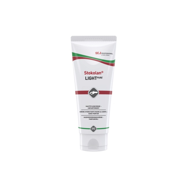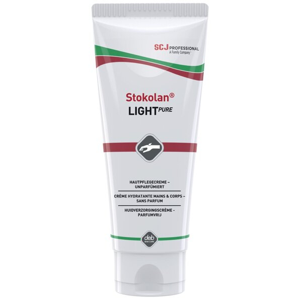 Entdecken Sie die Hautpflegecreme Stokolan Light PURE in der praktischen 100 ml Tube, entwickelt von Deb stoko. Diese milde, unparfümierte und farbstofffreie Rezeptur ist ideal für normale Haut und eignet sich hervorragend für industrielle und lebensmittelverarbeitende Bereiche, das Gesundheitswesen, Büros und öffentliche Waschräume.