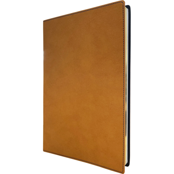Stilvolles Notizbuch mit hochwertigem Alcantara-Einband in Cognac und edlem Goldschnitt. Mit karierten, perforierten Seiten, abgerundeten Ecken, Gummiband, Stifteschlaufe, Leseband und praktischer Einstecktasche – ideal für Notizen und Organisation.