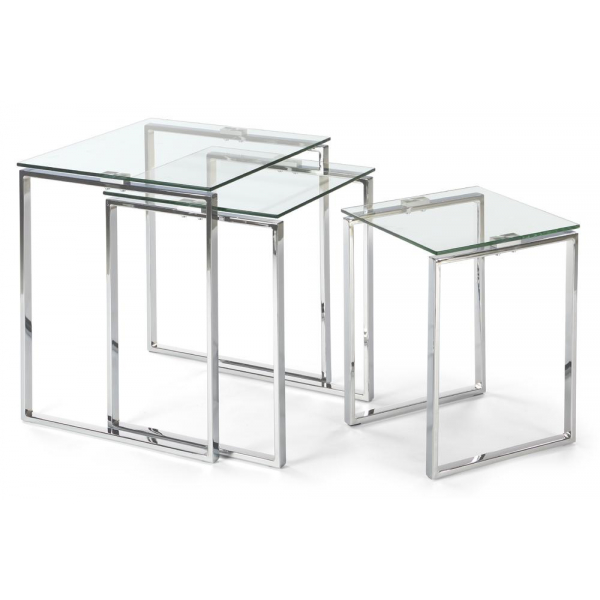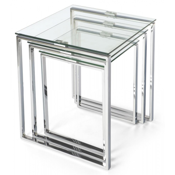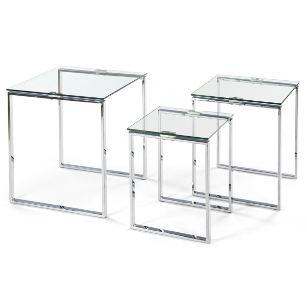 Entdecken Sie das 3er SET Beistelltisch XENIA TRI von Deskin – die perfekte Lösung für stilvolle Empfangs- und Besprechungsbereiche. Die Kombination aus verchromten Gestellen und Tischplatten aus ESG-Sicherheitsglas verleiht diesem Set eine hochwertige und edel anmutende Optik, die sowohl funktional als auch ästhetisch ansprechend ist.