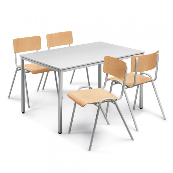 Deskin Besprechungstisch BASE-MODUL Q, 72cm (H), 120x70cm (BxT), 6 Personen, rechteckig, lichtgrau / silber