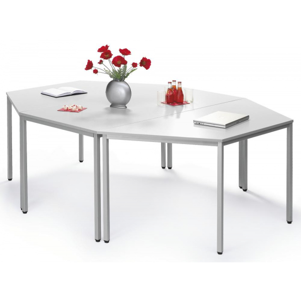 Deskin Besprechungstisch Deskin-Line, 72cm (H), 160x69cm (BxT), 3 Personen, Trapezform, weiß / silber
