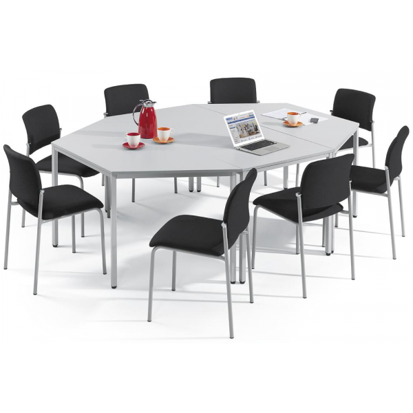 Deskin Besprechungstisch Deskin-Line, 72cm (H), 160x69cm (BxT), 3 Personen, Trapezform, lichtgrau / silber