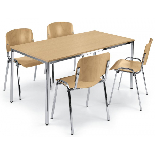 Besprechungstisch Deskin Deskin-Line 248692 • Höhe: 72cm • Platte: buche, 160x80cm (BxT), rechteckig, 3-Schicht-Qualitätsspanplatte mit Melaminharzbeschichtung, 19mm • geeignet für: 6 Personen • Gestell: chrom, 4-Fuß-Gestell, Stahl • ohne Rollen • Gewicht: 26kg • Anlieferung: zerlegt