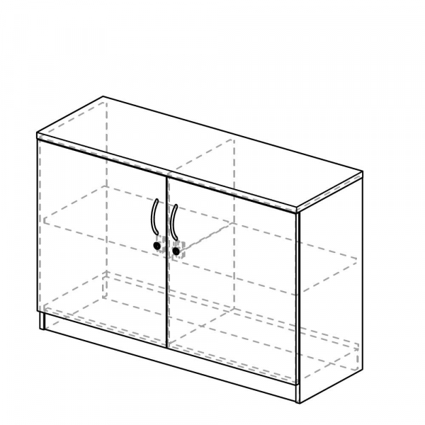 2x1 Fachboden höhenverstellbar, Flügeltüren abschließbar, Sichtrückwand, Bügelgriff, Mitteltrennwand, Höhenausgleichsschrauben von innen einstellbar