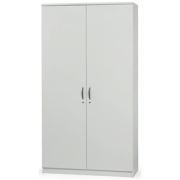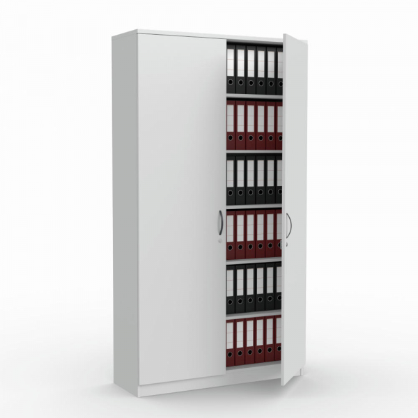 2x5 Fachböden höhenverstellbar, Flügeltüren abschließbar mit Schließdämpfung, Bügelgriff, Mitteltrennwand, Sichtrückwand, von innen einstellbare Möbelgleiter