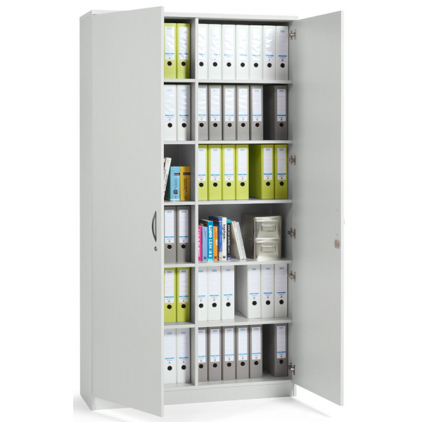 5 Fachböden höhenverstellbar, Flügeltüren abschließbar, Sichtrückwand, Bügelgriff, Höhenausgleichsschrauben von innen einstellbar