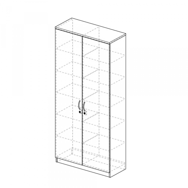 2x1 Fachboden höhenverstellbar, Flügeltüren abschließbar, Sichtrückwand, Bügelgriff, Mitteltrennwand, Höhenausgleichsschrauben von innen einstellbar