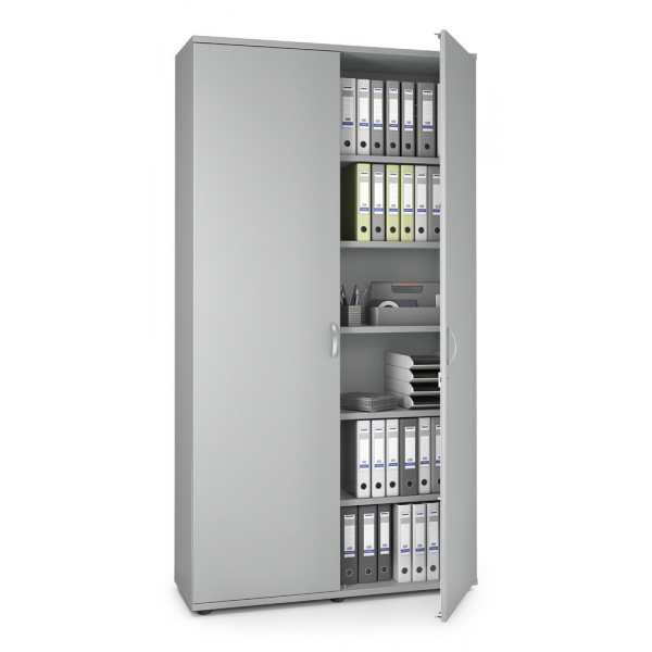 2x2 Fachböden höhenverstellbar, 30 kg Tragkraft/Fachboden, Flügeltüren abschließbar mit Schließdämpfung, Bügelgriff, Mitteltrennwand, Sichtrückwand, von innen einstellbare Möbelgleiter