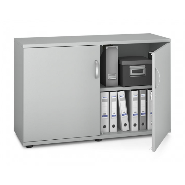 2x1 Fachböden höhenverstellbar, Flügeltüren abschließbar mit Schließdämpfung, Bügelgriff, Mitteltrennwand, Sichtrückwand, von innen einstellbare Möbelgleiter
