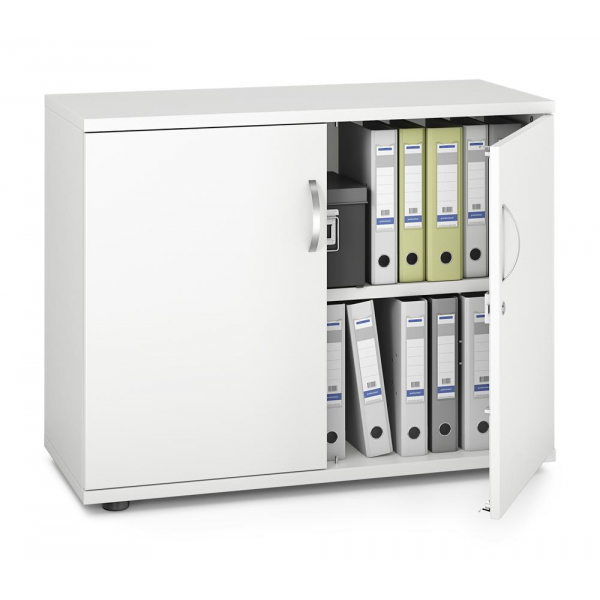1 Fachboden höhenverstellbar, 30 kg Tragkraft/Fachboden, Flügeltüren abschließbar mit Schließdämpfung, Bügelgriff, Sichtrückwand, von innen einstellbare Möbelgleiter