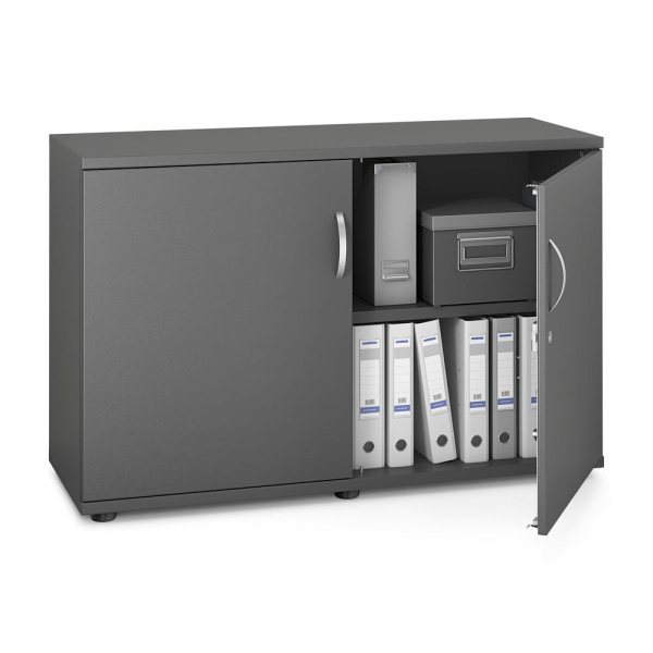 2x1 Fachboden höhenverstellbar, 30 kg Tragkraft/Fachboden, Flügeltüren abschließbar mit Schließdämpfung, Bügelgriff, Mitteltrennwand, Sichtrückwand, von innen einstellbare Möbelgleiter