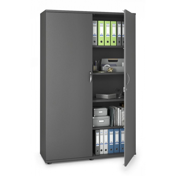 2x4 Fachböden höhenverstellbar, 30 kg Tragkraft/Fachboden, Flügeltüren abschließbar mit Schließdämpfung, Bügelgriff, Mitteltrennwand, Sichtrückwand, von innen einstellbare Möbelgleiter