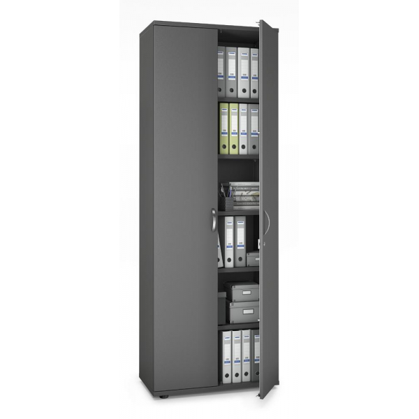 5 Fachböden höhenverstellbar, 30kg Tragkraft/Fachboden, Flügeltüren abschließbar mit Schließdämpfung, Bügelgriff, Sichtrückwand, von innen einstellbare Möbelgleiter