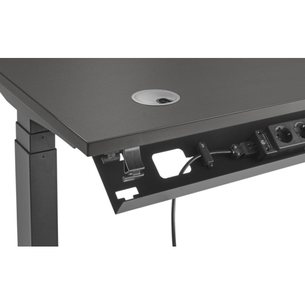 Die Kabelwanne 1200 PROFI von Deskin ist die ideale Lösung, um Ordnung in Ihrem Arbeitsbereich zu schaffen. Sie bietet ausreichend Platz, um sämtliche Kabel und Steckdosen sicher zu verstauen. Durch die beidseitig abklappbare Konstruktion ist sie besonders flexibel und einfach zu handhaben. Die Kabelwanne ist aus pulverbeschichtetem Metall in elegantem Schwarz (RAL 9005) gefertigt und passt perfekt in moderne Büros.