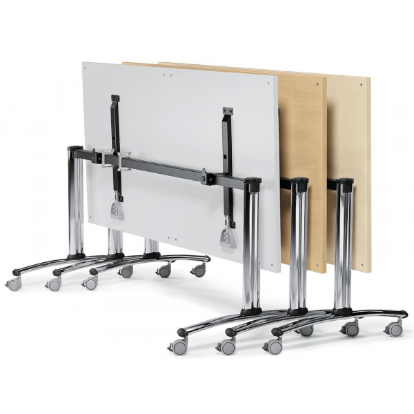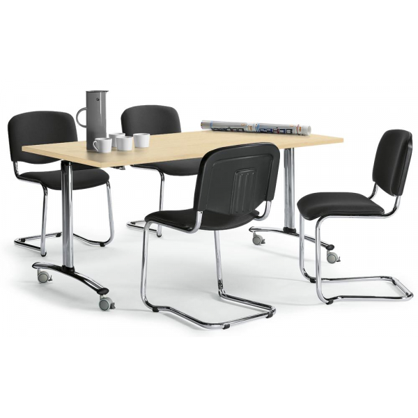 Die vier integrierten Rollen sorgen für einen mühelosen Transport, sodass der Tisch schnell und unkompliziert an jeden Standort bewegt werden kann, sei es für Veranstaltungen, Seminare oder Schulungen. Mit dem rechteckigen Design fügt sich der Tisch nahtlos in jede Umgebung ein.