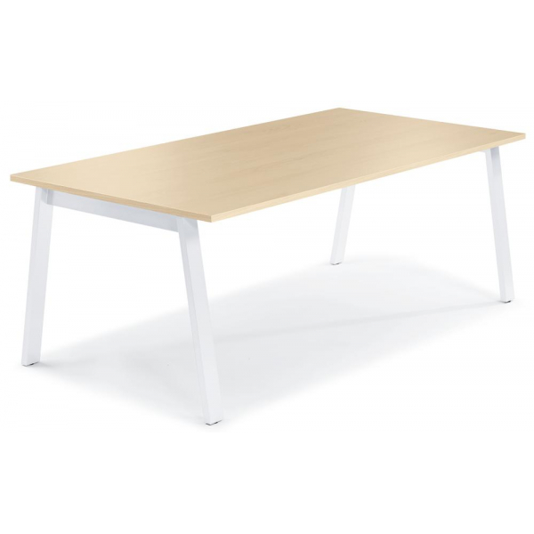 Konferenztisch Deskin DESKIN RIO 275610 • Höhe: 73,5cm • Platte: ahorn, 160x80cm (BxT), rechteckig, 3-Schicht-Qualitätsspanplatte mit Melaminharzbeschichtung, 25mm • geeignet für: 6 Personen • Gestell: weiß, A-Fuß-Gestell, Stahl • ohne Rollen • Gewicht: 36kg • Anlieferung: zerlegt