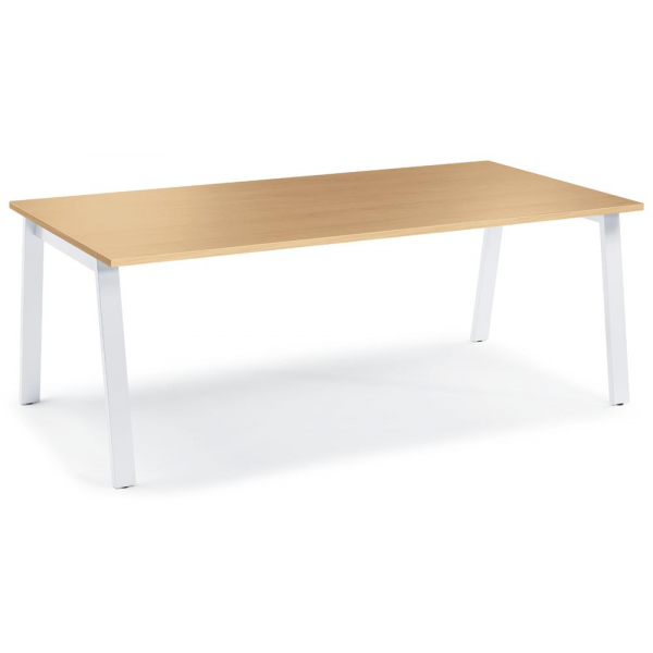 Der Konferenztisch DESKIN RIO ist die ideale Lösung für Ihr Büro oder Besprechungsraum. Mit einer Höhe von 73,5 cm und einer großzügigen Fläche von 200 x 100 cm bietet er Platz für bis zu 8 Personen. Seine elegante Kombination aus einem Holzdekor in Buche und einem weißen A-Fuß-Stahlgestell verleiht jedem Raum eine moderne Note.