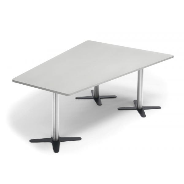 Deskin Konferenztisch DUBLIN, 73,5cm (H), 200x80/141cm (BxT), 6 Personen, Trapezform, lichtgrau / chrom/anthrazit