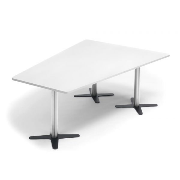 Jetzt Deskin Konferenztisch DUBLIN, 73,5cm (H), 200x80/141cm (BxT), 6 Personen, Trapezform, weiß / chrom/anthrazit günstig kaufen.