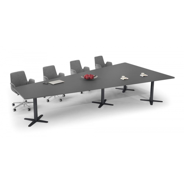 Deskin Konferenztisch DUBLIN, 73,5cm (H), 380x80/197,5cm (BxT), 8 Personen, Trapezform, anthrazit / anthrazit