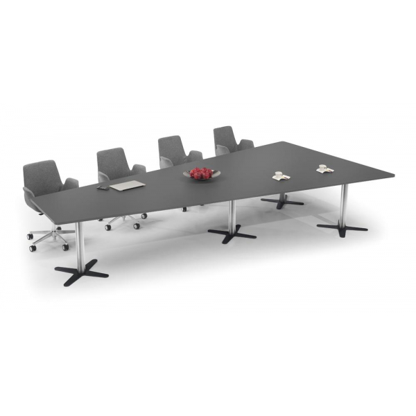 Deskin Konferenztisch DUBLIN, 73,5cm (H), 380x80/197,5cm (BxT), 8 Personen, Trapezform, anthrazit / chrom/anthrazit