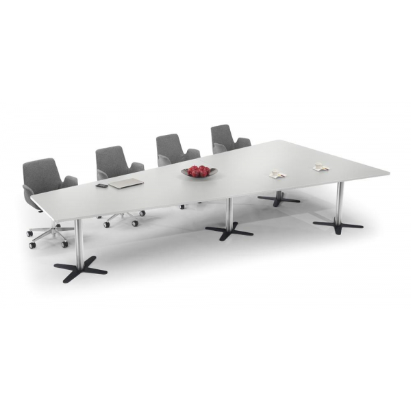 Deskin Konferenztisch DUBLIN, 73,5cm (H), 380x80/197,5cm (BxT), 8 Personen, Trapezform, lichtgrau / chrom/anthrazit